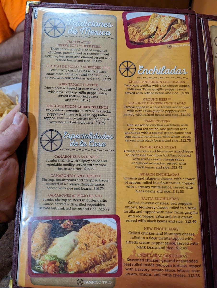 Highlights include flavorful options like the Tampico Trio Enchiladas, Super Nachos, and the Special Fajita—each bringing a warm, inviting presence to the table. Freshly made chips and salsa often start the meal, creating a perfect moment to settle in and enjoy the friendly, easygoing atmosphere of the restaurant.